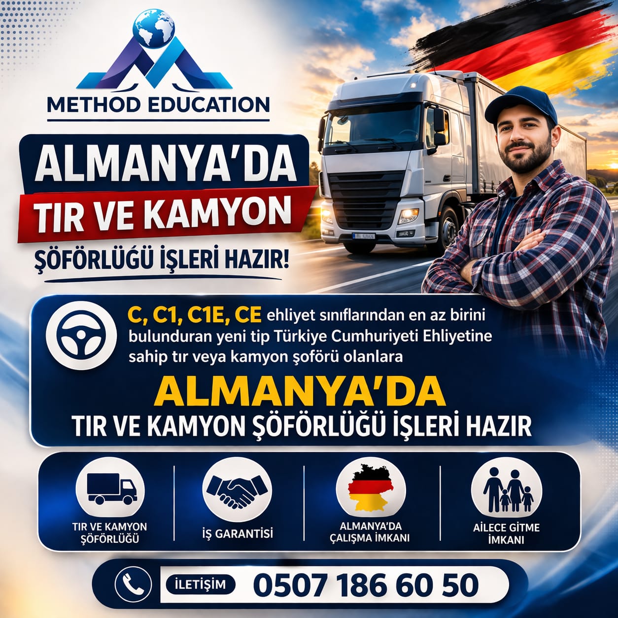 Almanya’da C, C1, C1E, CE ehliyeti olanlar için Tır ve Kamyon şoförlüğü yapma imkanı.