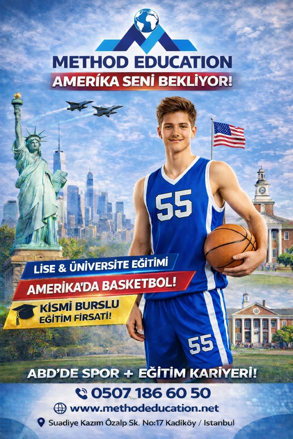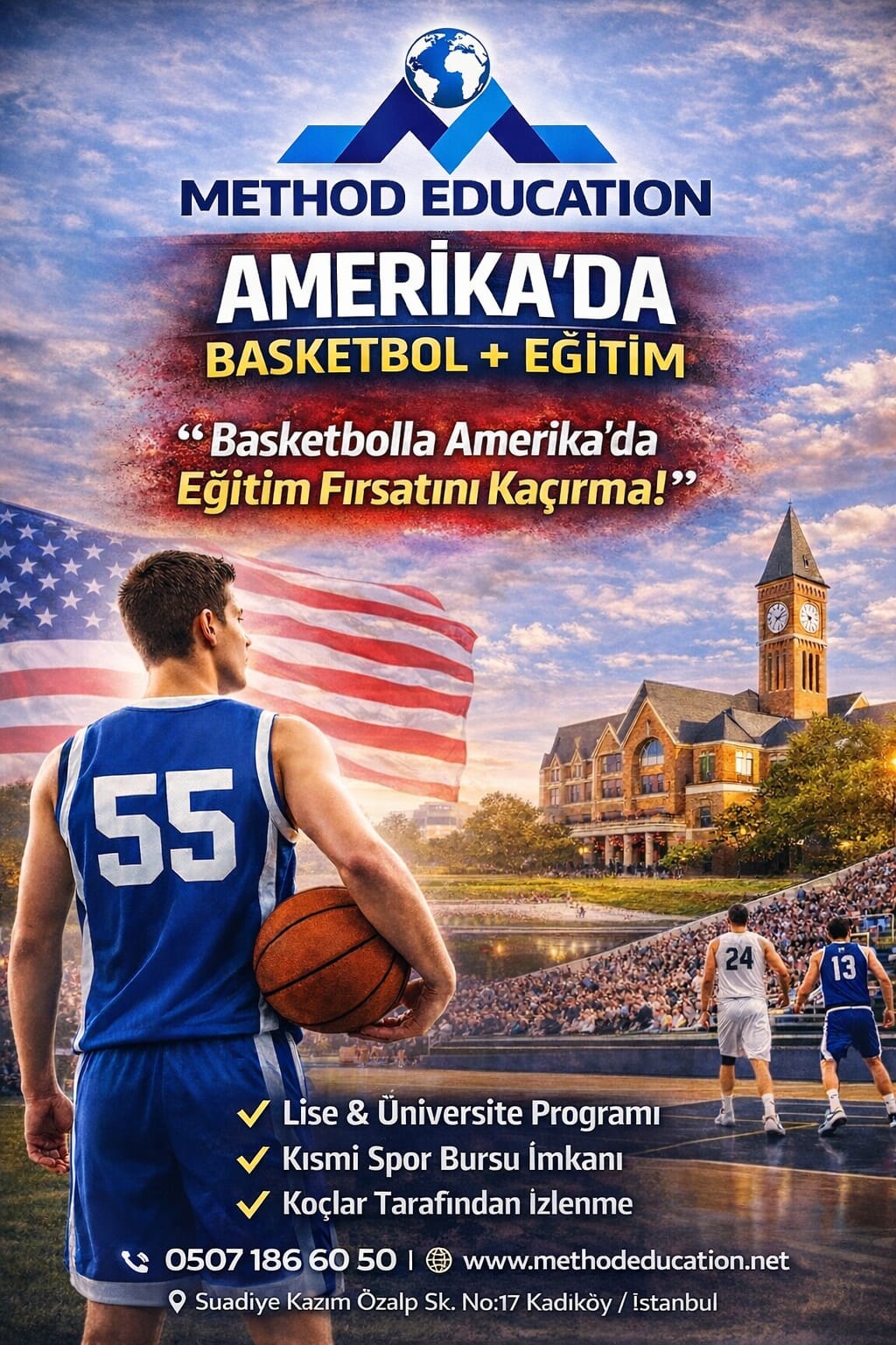 Amerika’da Lise veya Üniversite eğitimi alırken basketbolunu da geliştirme imkanları. Basketbol kabiliyeti olanlar için kaçırılmayacak fırsat.