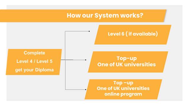 Öğrenci Üniversitede LEVEL 4 ve 5’i aldıktan sonra yani Üniversite 1 ve 2’den sonra son senesi olan LEVEL 6 almak için 3 seçeneği mevcuttur.