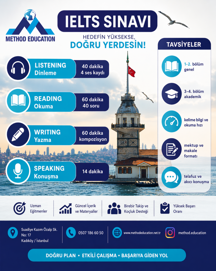 IELTS sınavı yurtdışında çalışmak, okumak, yaşamak isteyen bireylerin hayallerini gerçekleştirmelerine yardımcı olmaktadır. Türkçe açılımı ile Uluslararası İngilizce Dil Sınavı Sistemi olan IELTS, dil değerlendirilmelerinde dünyanın önde gelen uzmanları tarafından geliştirilmektedir. Geliştirilen bu sınav bireylerin dört temel dil becerisi olan okuma, yazma, dinleme ve konuşma becerilerini ölçmektedir. Sınavda elde edeceğiniz başarı ile birçok üniversiteye kabul alabilir, IELTS sınavının gerekli görüldüğü yerlerde iş başvurularında bulunulabilir ve birçok avantaja sahip olabilirsiniz.
